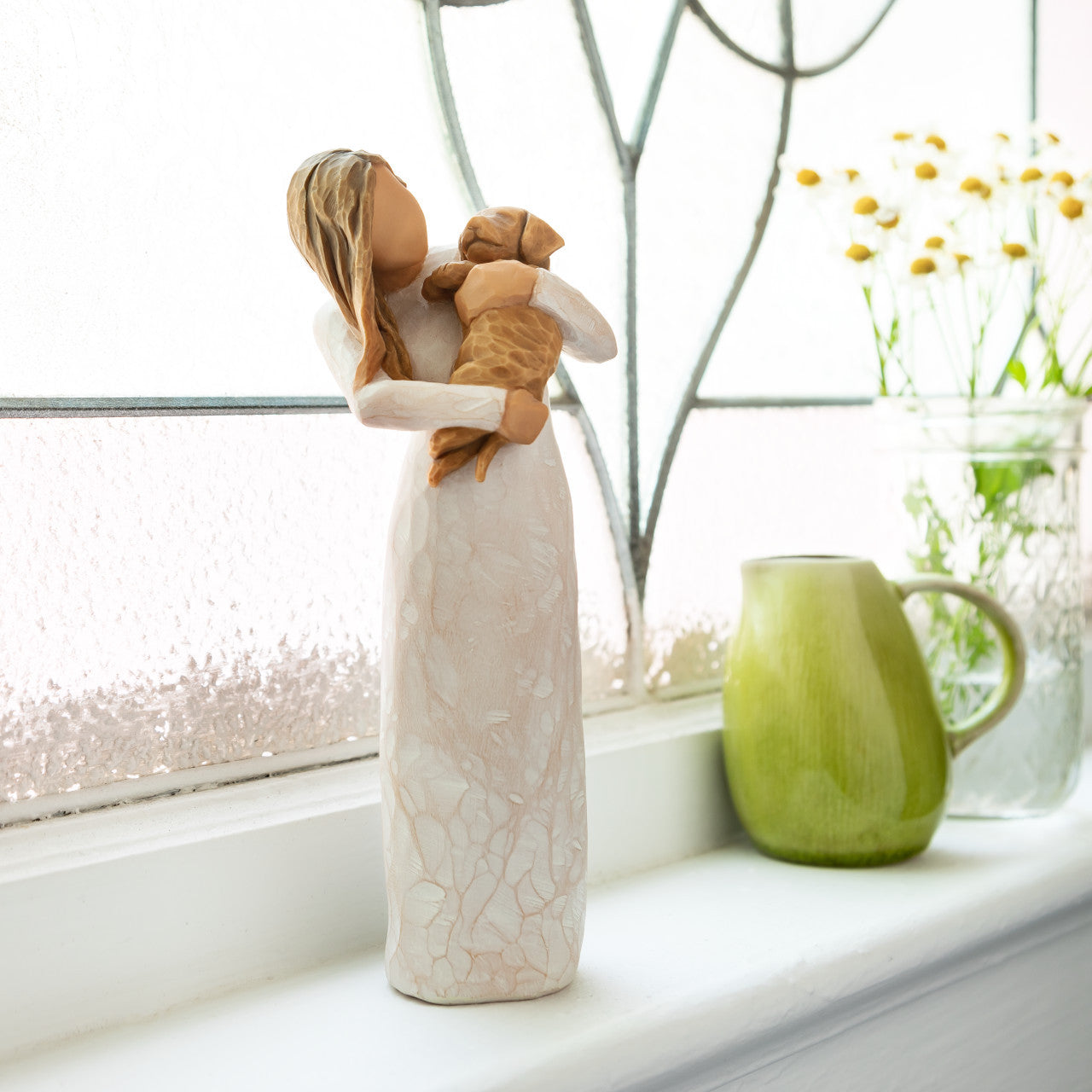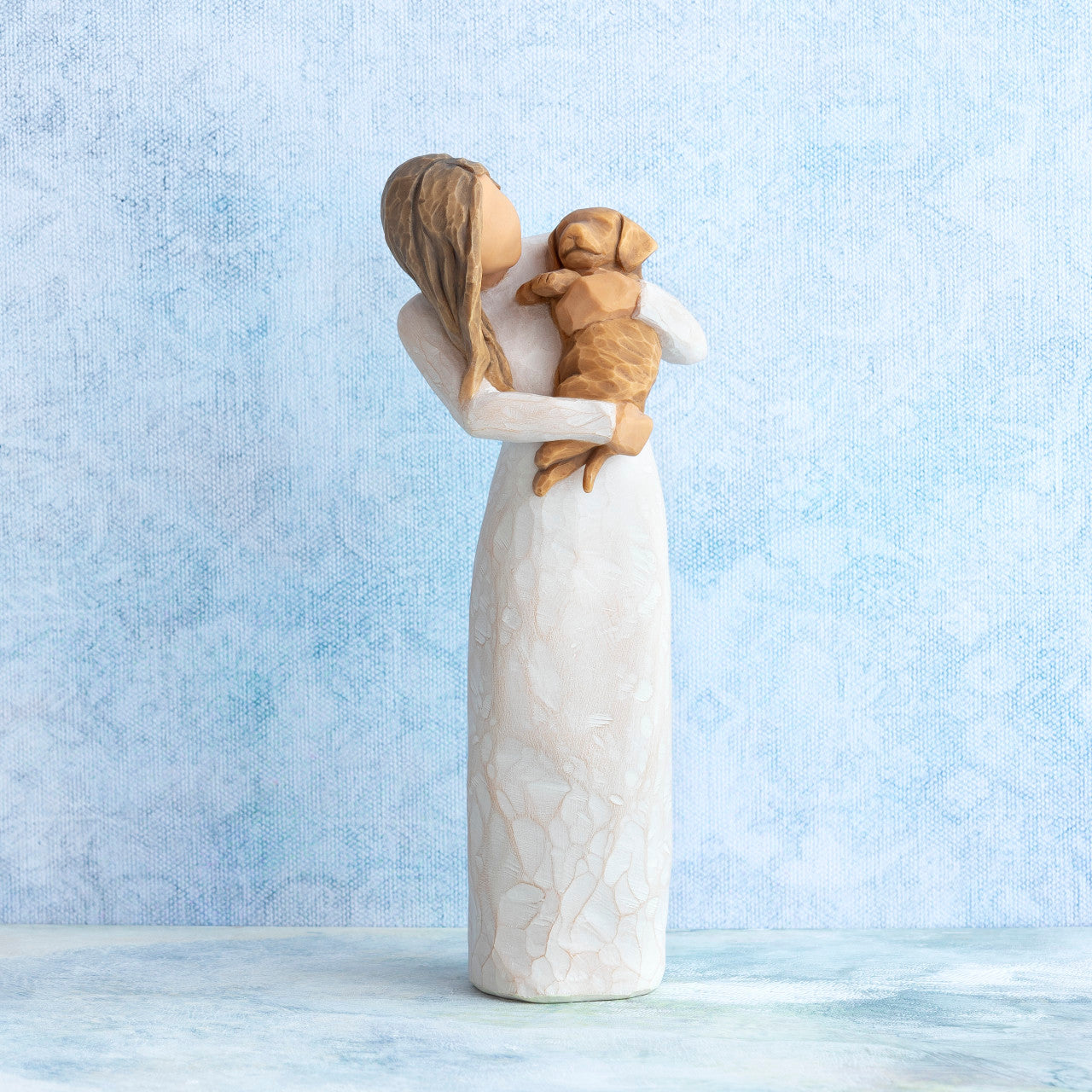 Sculpted figure is a gift for dog lovers, friends, veterinarians, petsitters... an expression of friendship, love and appreciation. This figure is also available holding a DARK dog #28040.
