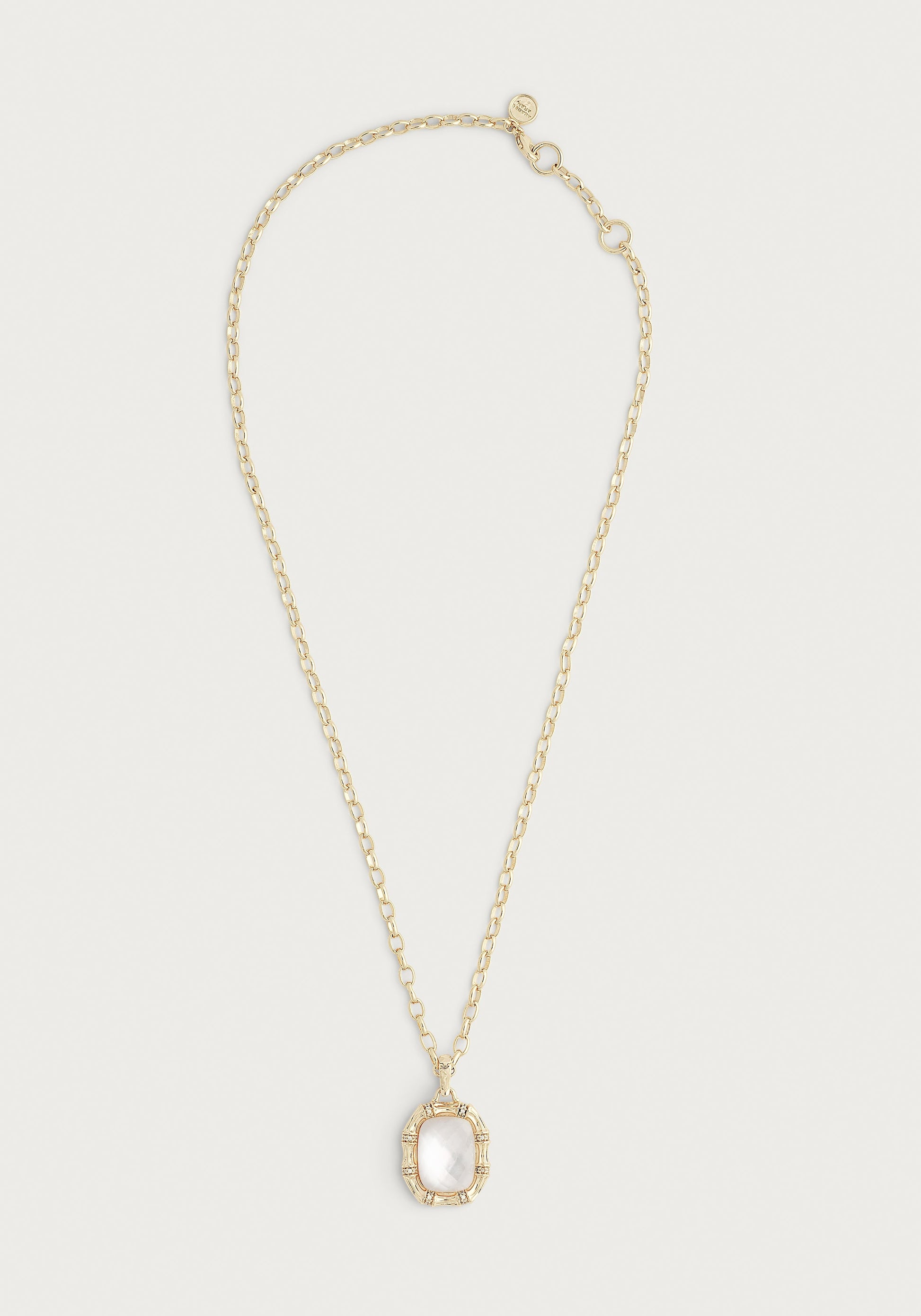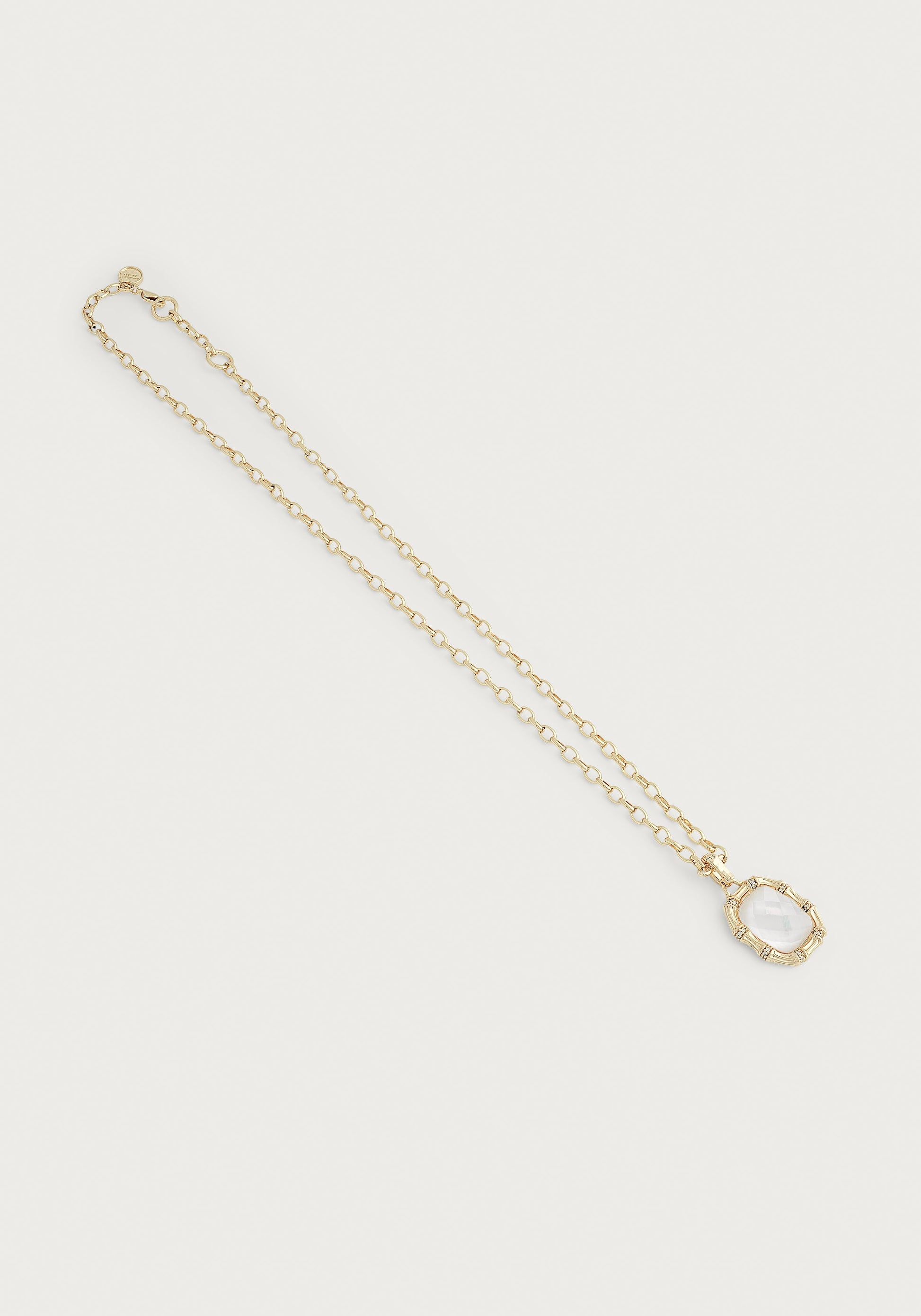 Bamboo With Stone Pendant Necklace - Mother Of Pearl