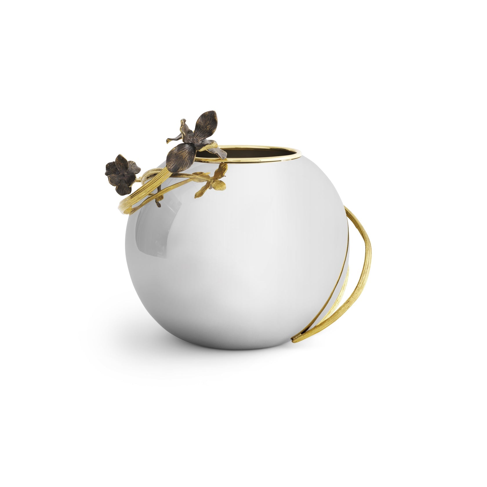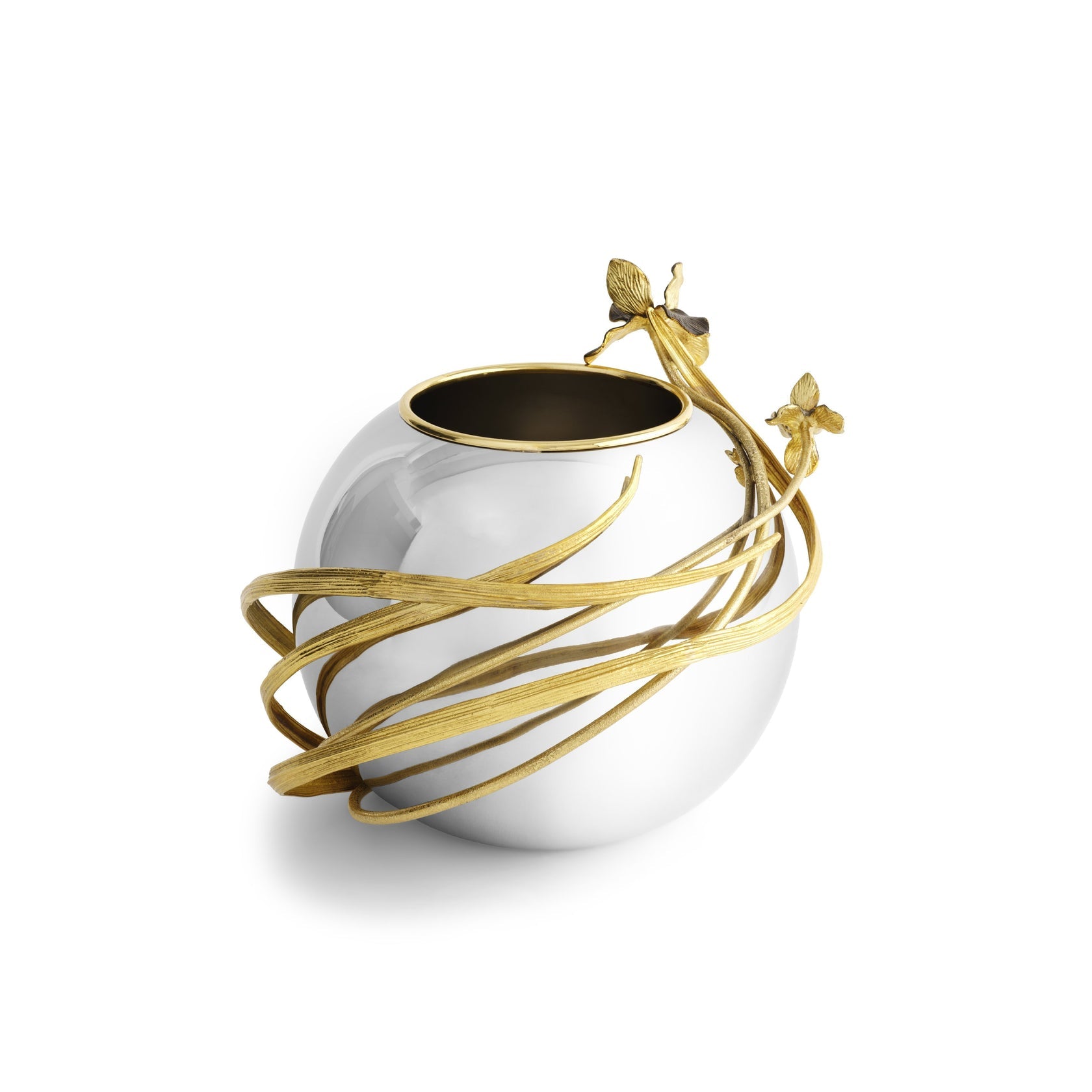 The Black Iris Collection is inspired by the vitality and beauty of the iris flower. Named after the Greek word for rainbow, the idea of a "black rainbow" feels oxymoronic and mysterious. Michael Aram uses contrasting oxidized and polished brass, as his way of doubting the question of whether there is such a thing as an iris which is truly black in nature.
