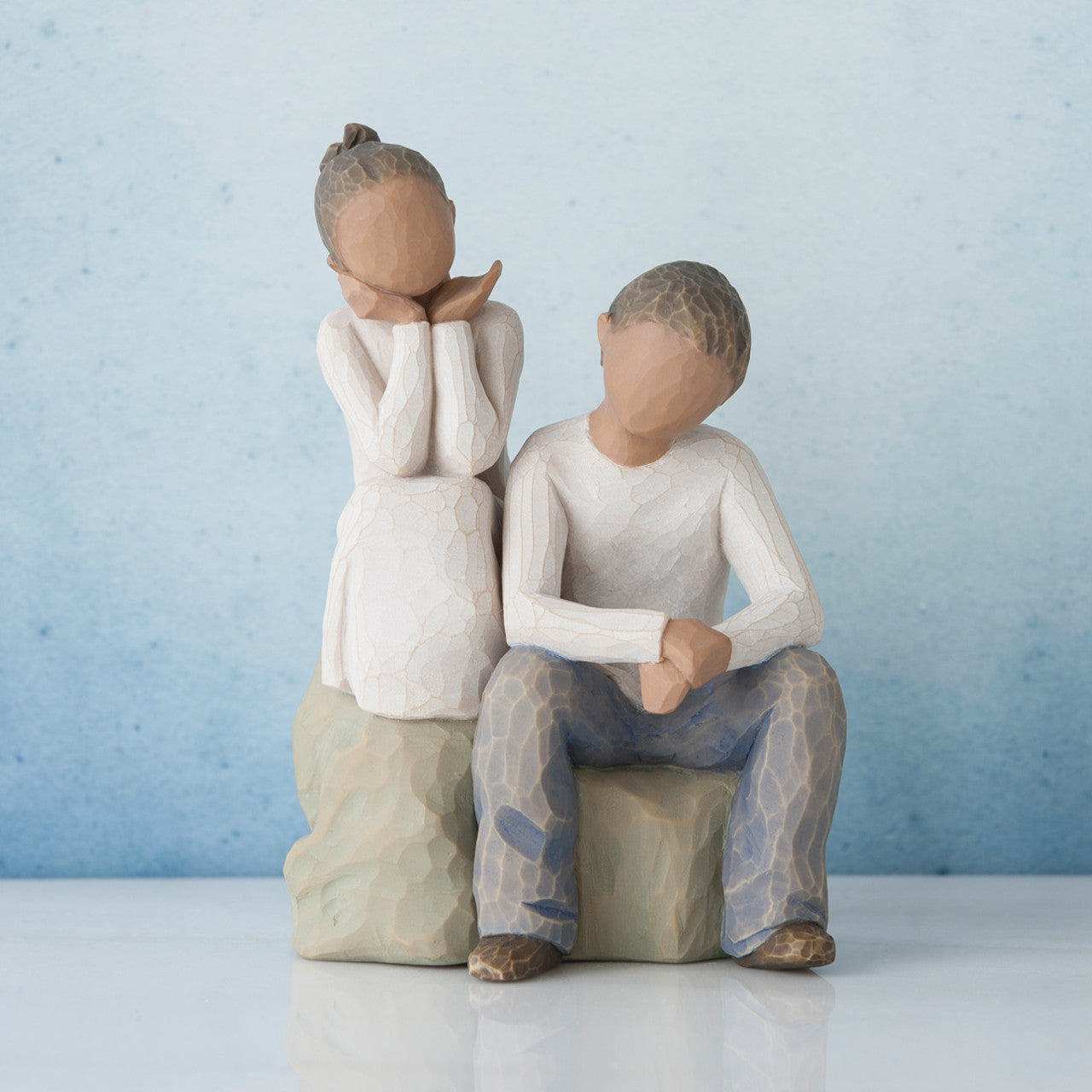 This piece is available in both LIGHTER and DARKER (as shown) skin tones and hair color. A gift to reflect the friendship between siblings. Child figures work well in Family Groupings. Position two (or three or more) figures so that they appear to be interacting, turned toward one another, touching. Like families do.