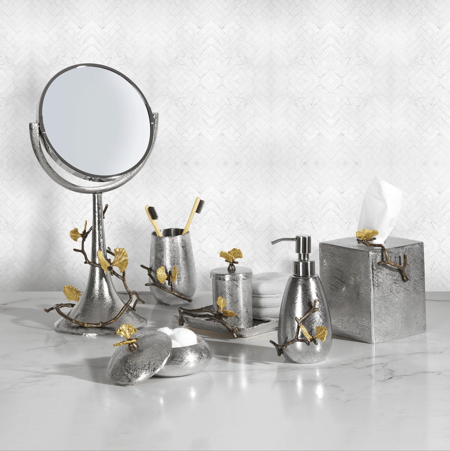 The Butterfly Ginkgo Collection celebrates the representation of flora as fauna. Michael's fascination with a particular type of ginkgo tree , the Ginkgo Biloba, or "Butterfly Ginkgo", which grows with a double leaf reminiscent of a butterfly's wings, gave rise to a fantasia image of the plant. Executed at the highest level of handcraftsmanship, each piece is rendered in solid brass with hand etched cocoon-shaped vessels. The pieces in the collection are a tour de force of the handcrafted process, capturing the poetic spirit that is so deeply indicative of Michael's work.