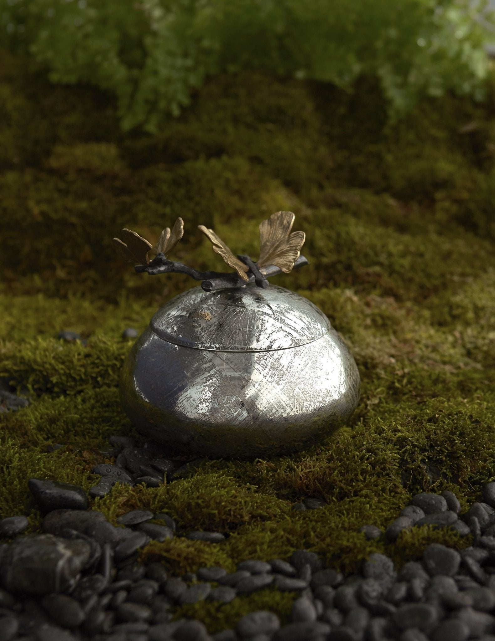 The Butterfly Ginkgo Collection celebrates the representation of flora as fauna. Michael's fascination with a particular type of ginkgo tree , the Ginkgo Biloba, or "Butterfly Ginkgo", which grows with a double leaf reminiscent of a butterfly's wings, gave rise to a fantasia image of the plant. Executed at the highest level of handcraftsmanship, each piece is rendered in solid brass with hand etched cocoon-shaped vessels. The pieces in the collection are a tour de force of the handcrafted process, capturing the poetic spirit that is so deeply indicative of Michael's work.