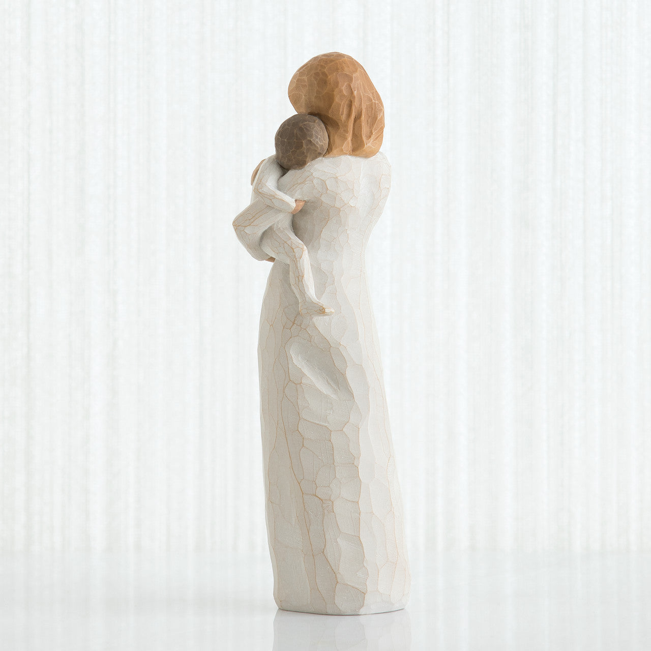 - Standing figure in cream dress holding toddler in cream onesie