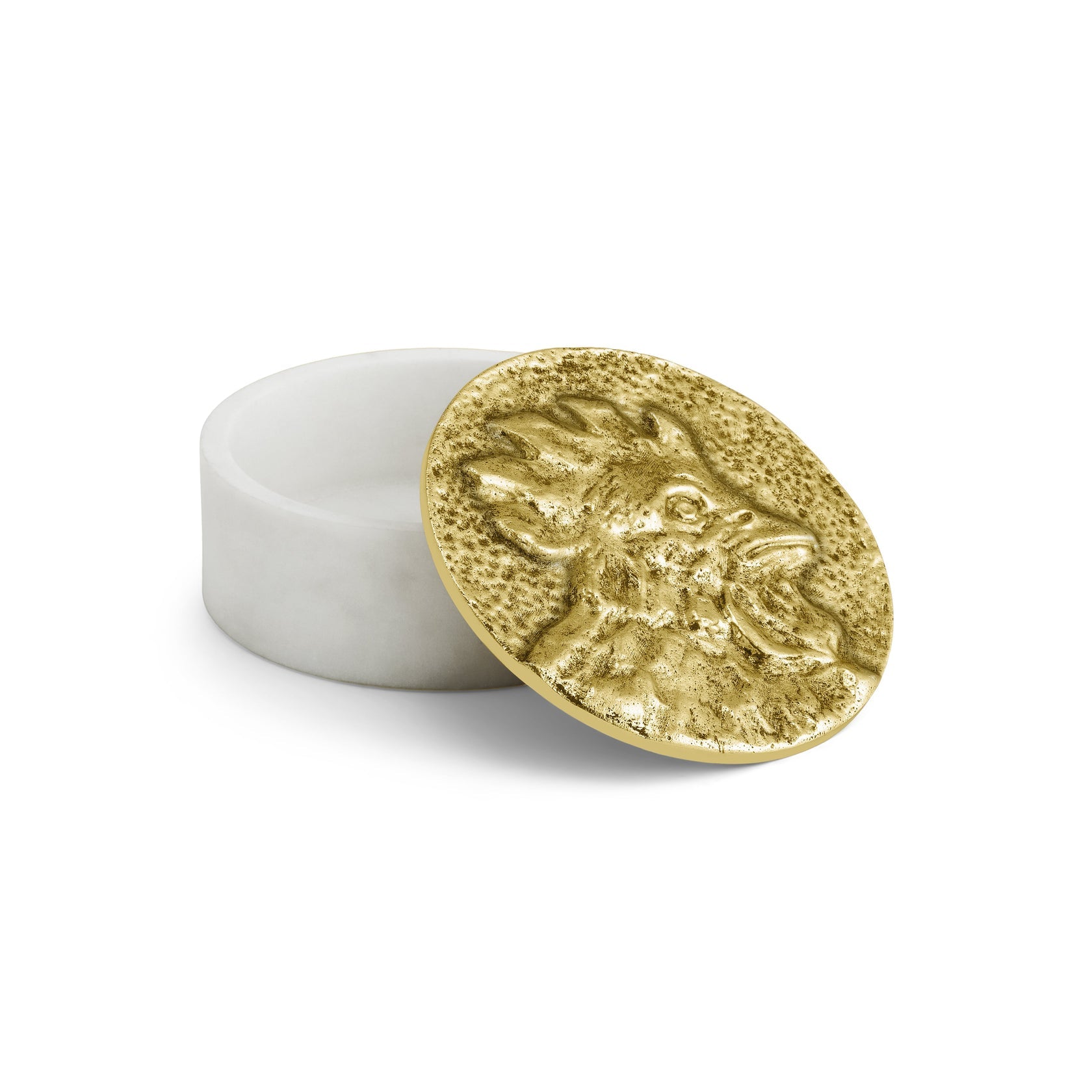 As part of a growing series of lidded boxes representing animals from the Chinese zodiac, this piece embodies the hard-working nature of those born during the Year of the Rooster. With good fortune, each piece illustrates the industry and independence of the Rooster.