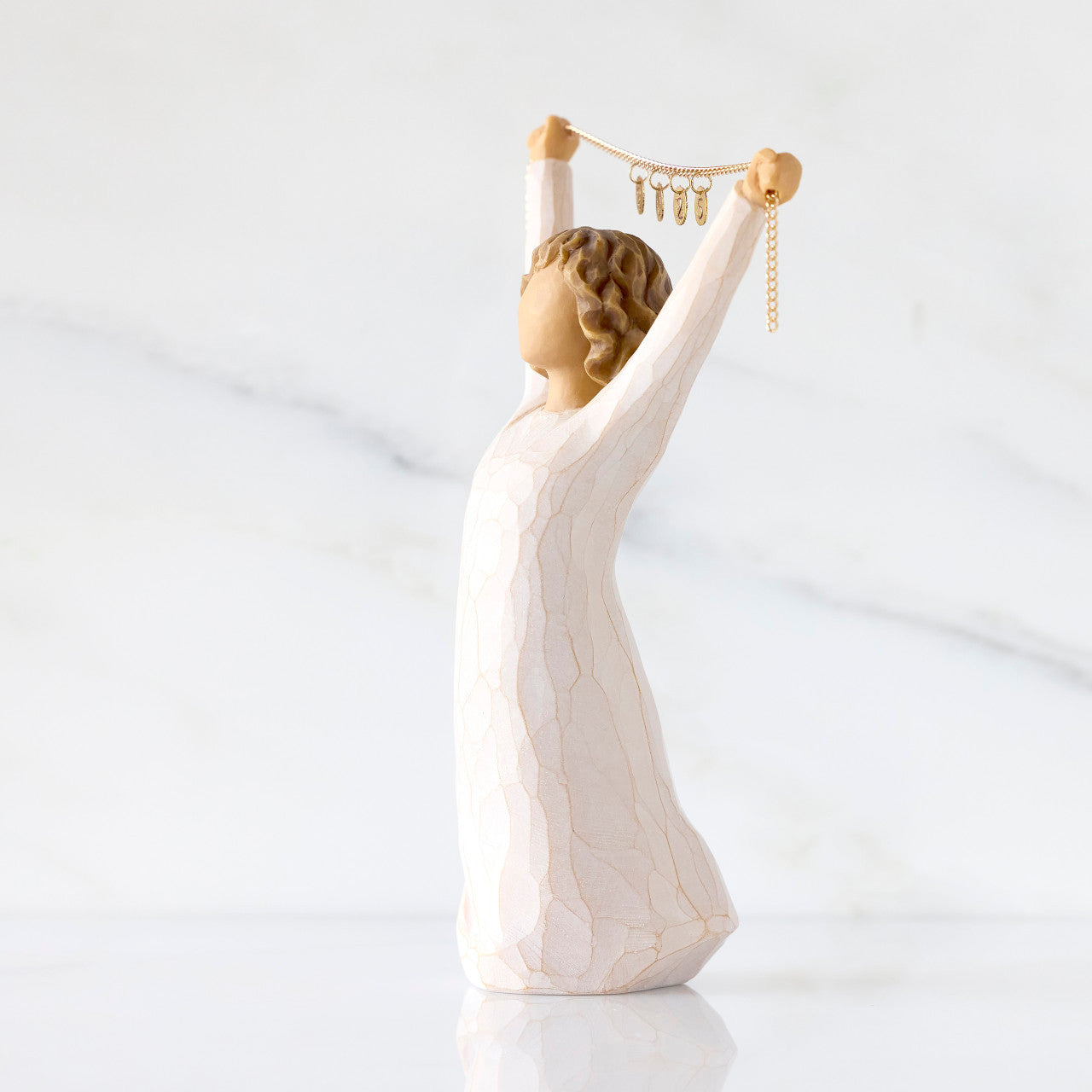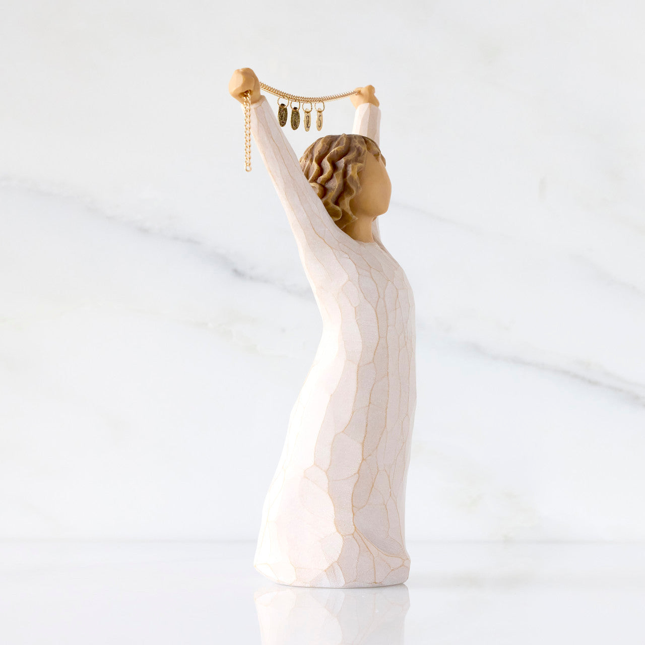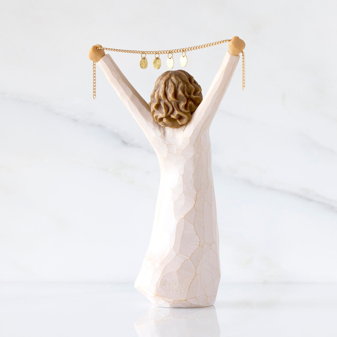 With a triumphant expression of hope and joy, this figure celebrates all the optimism a new year brings. Calling upon courage to meet personal challenges that may arise, she is a reminder of those who inspire us with their strength and spirit every day