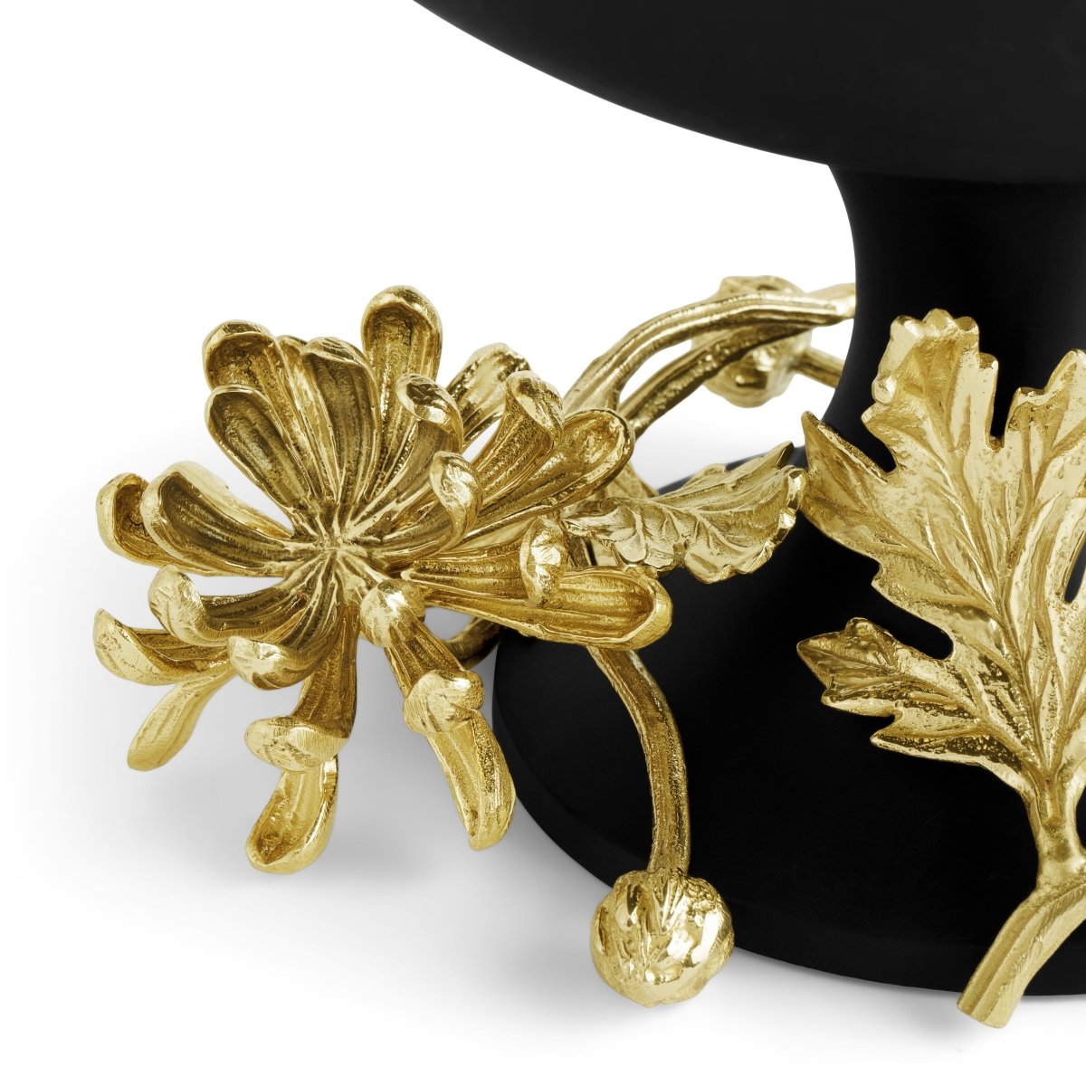 The Dahlia Collection captures a sense of romance, intricacy, and opulence. In the Victorian era, Dahlias were given as a symbol of love and devotion. In certain pieces, Michael has chosen to contrast the radiant golden blooms against black granite and enameled stainless steel, evoking a mysterious sensuality. When found in nature, the petals’ perfect symmetry and spiraling pattern embody the Golden Ratio.