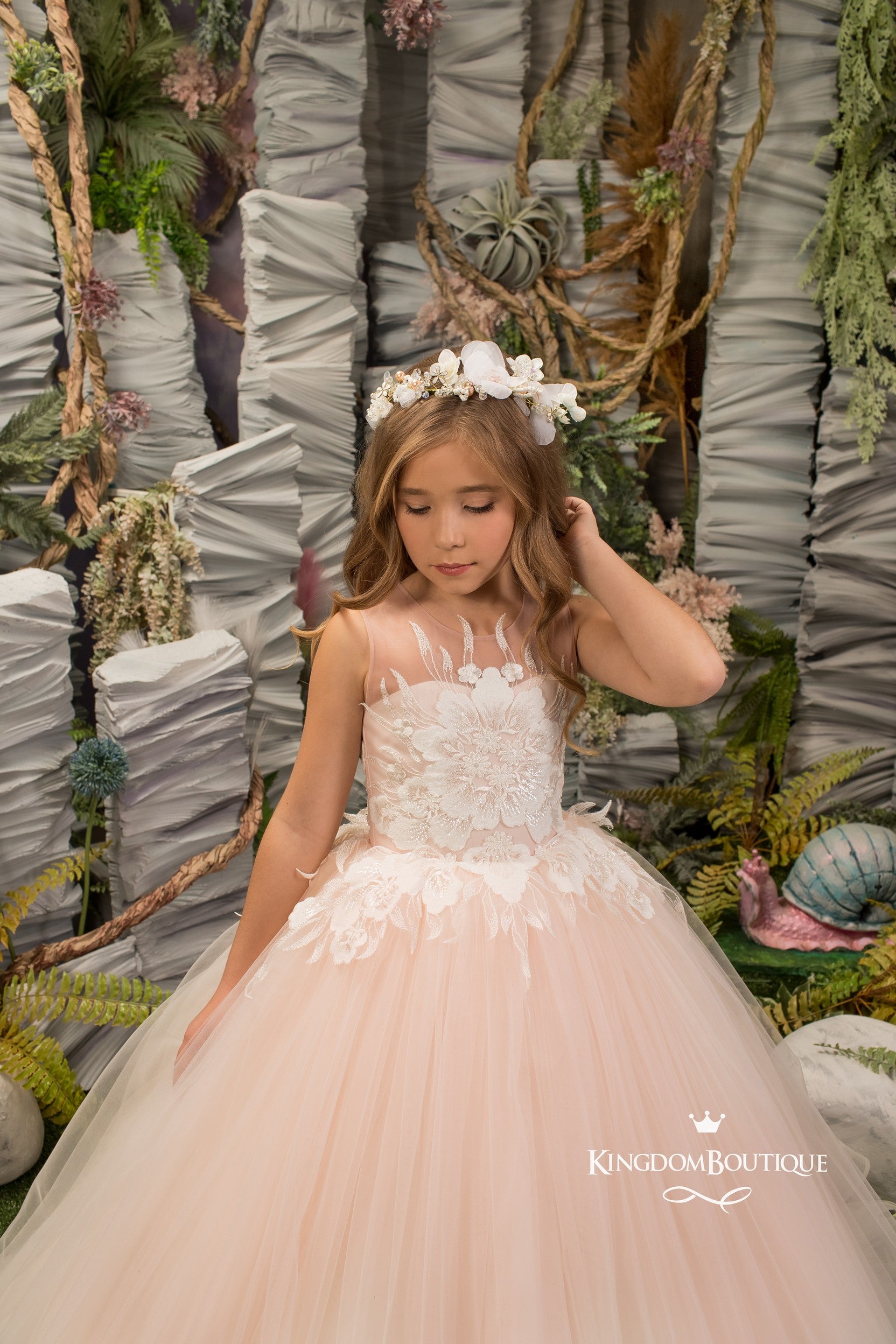 A delightful blossoms tiara has already been matched exclusively to this flower girl dress.