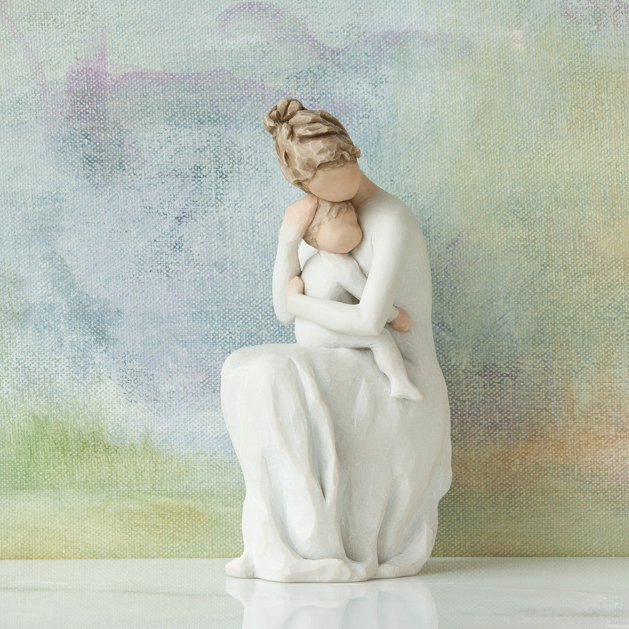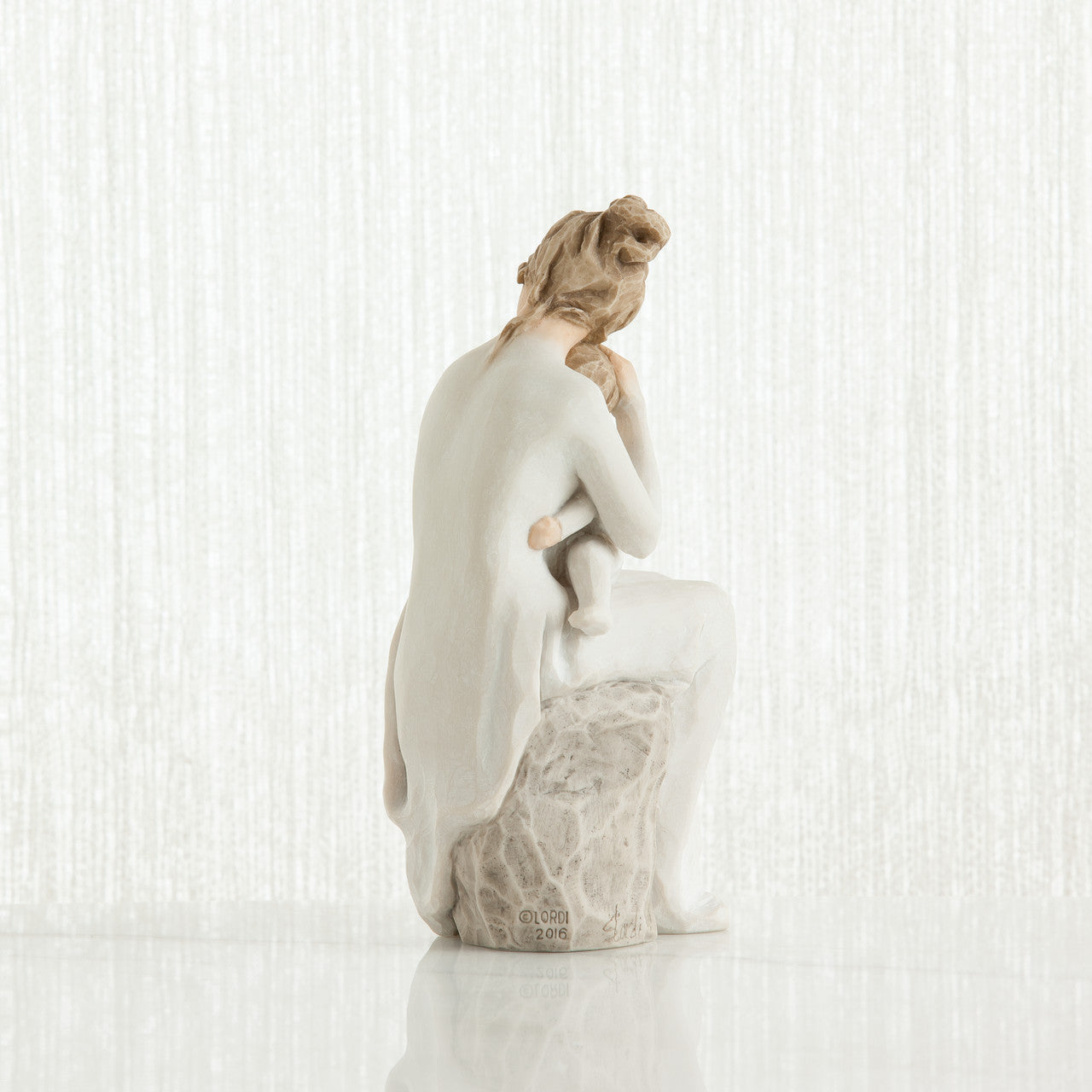 "I wanted this pose to evoke a feeling of being completely in the present with your child—the weight, the scent, the feel... sharing with each other the silent vow that you will be there for always. The months of infancy are like none other, maybe because you feel the baby is still part of you... baby and mother still as one, nothing can come between. The essential promise that a mother makes to her child, to love and protect forevermore, is unconditional." –Susan Lordi