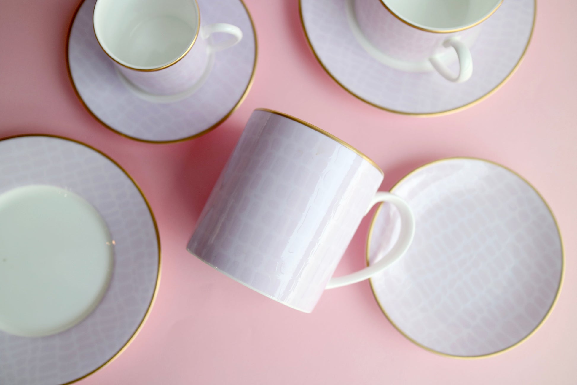 - Fine Bone China w/ 24K Gold Hand-painted Rim