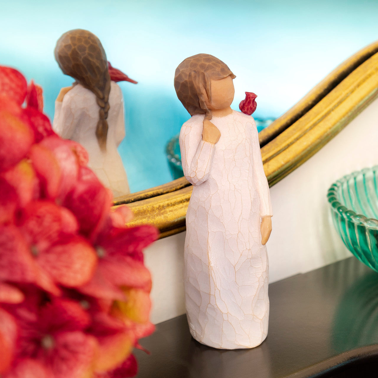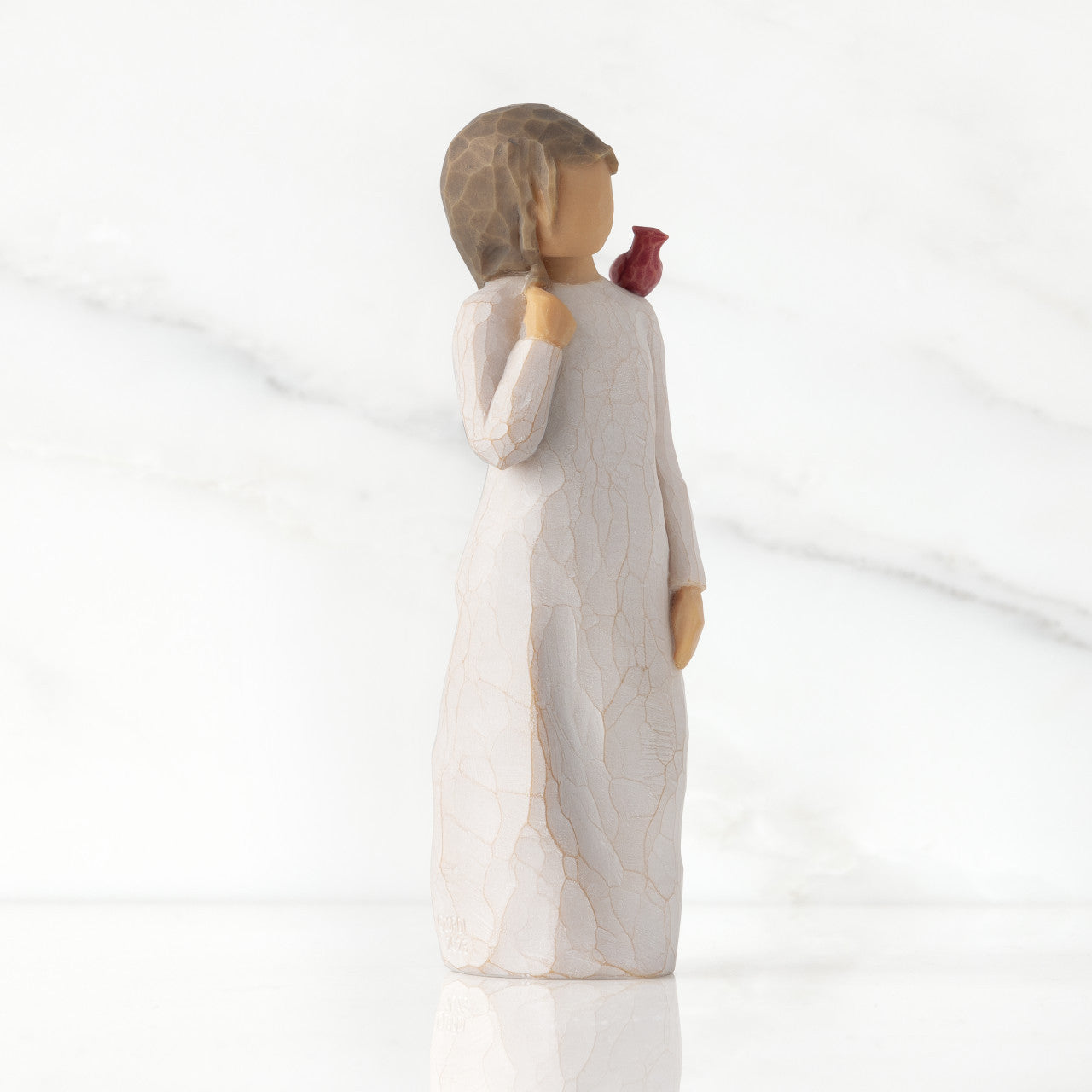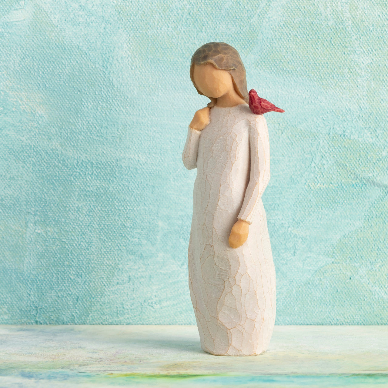 A gift of comfort and healing for one who has lost, or is very far from, a loved one. A reminder that those we love are always with us, in our memories and in our hearts. A red cardinal visits this figure as a small uplifting symbol of remembrance.
