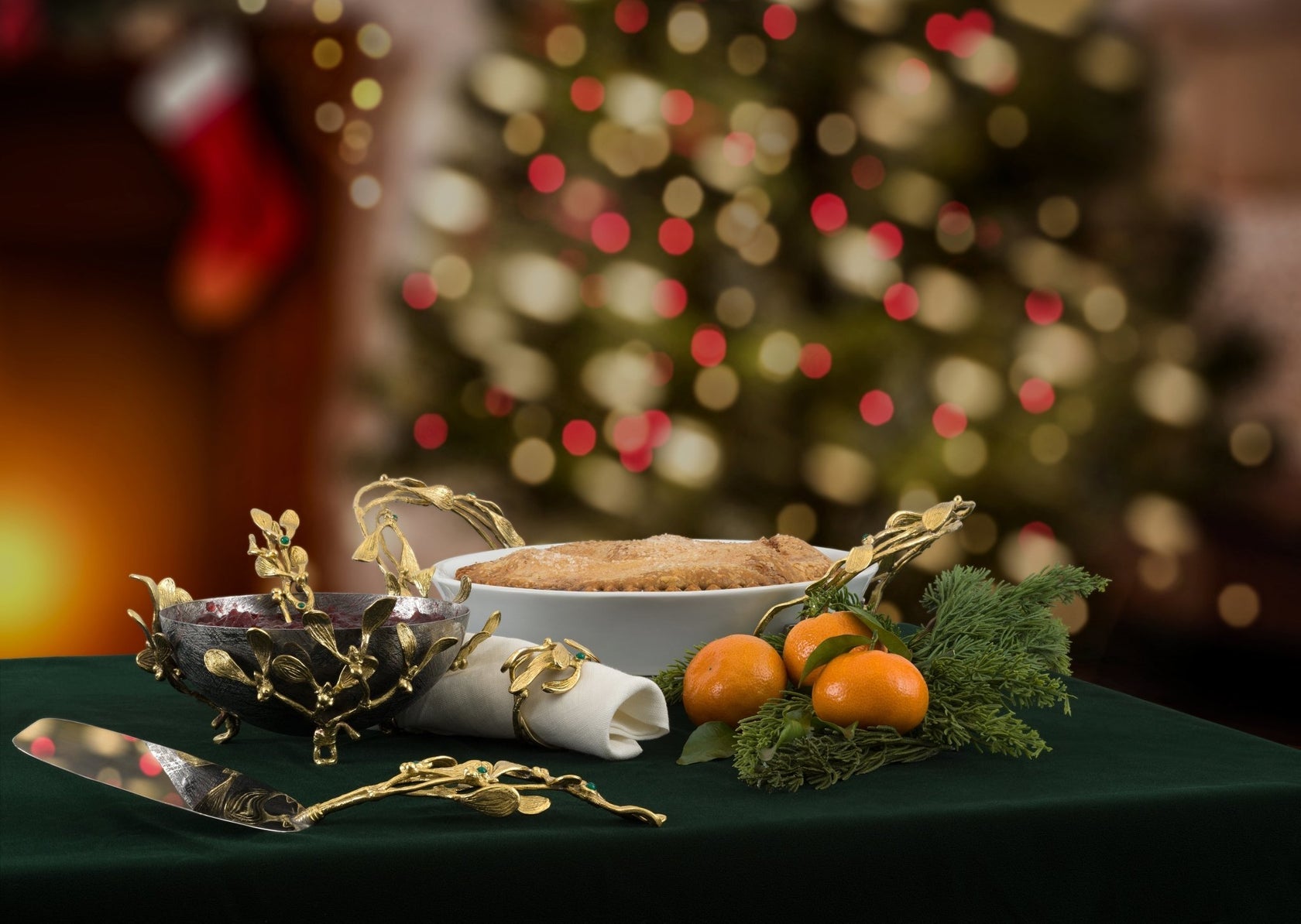 The Mistletoe Collection captures the spirit of the holiday season. Mistletoe, an evergreen that flourishes year-round, evokes the idea of renewal, vitality, and romance. In creating the collection, Michael was inspired by his love of nature, and fond memories of family celebrations spent around a beautifully set holiday table. Both personal and symbolic, this collection celebrates the beauty of nature and the importance of crafting memories to last generations.