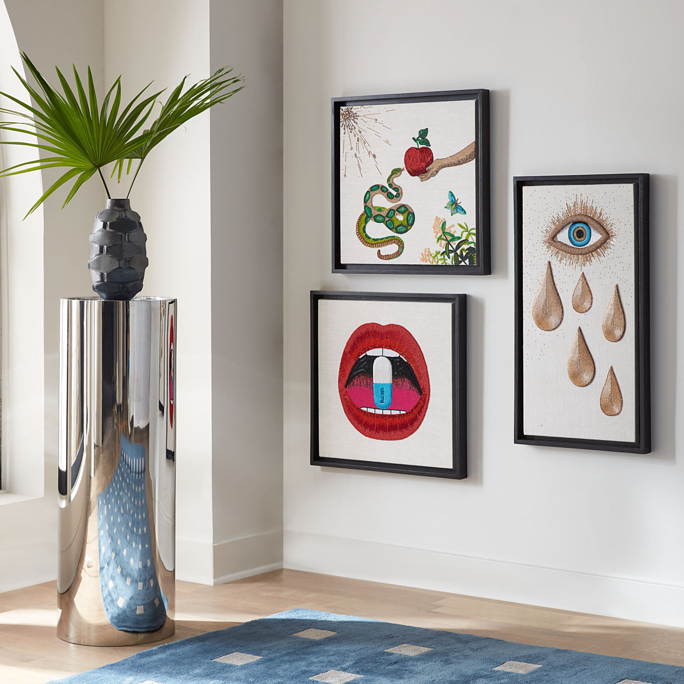 The perfect mix of the decadence of Halston and the madness of Dali. Crafty, couture, and exotic, this is the wall art that reminds your guests they're in the presence of an eccentric glamourpuss.