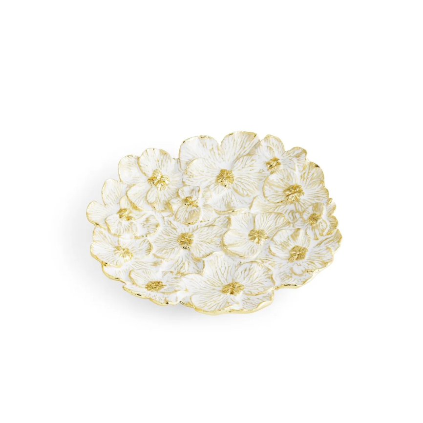 The Orchid Catch All is a handcrafted treasure, blending goldtone metal with delicate white enamel orchids to capture the plant’s ethereal beauty. Designed to hold your essentials with subtle luxury, this elegant piece balances artistry and function, making it a timeless addition to any space.