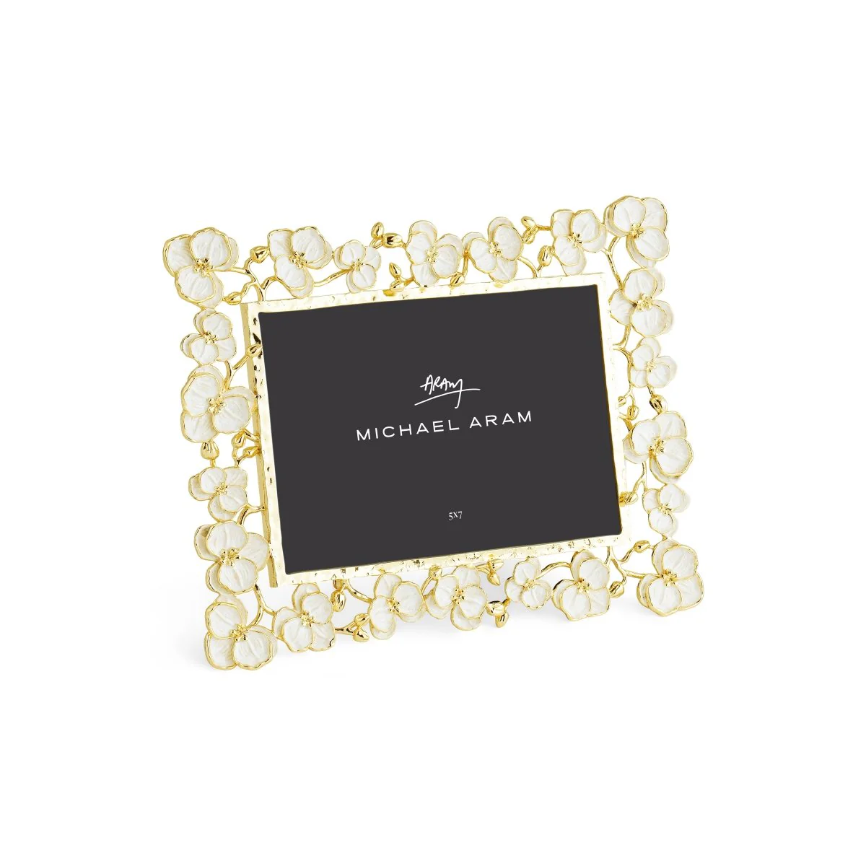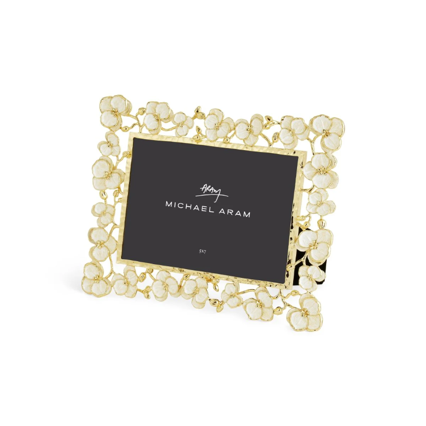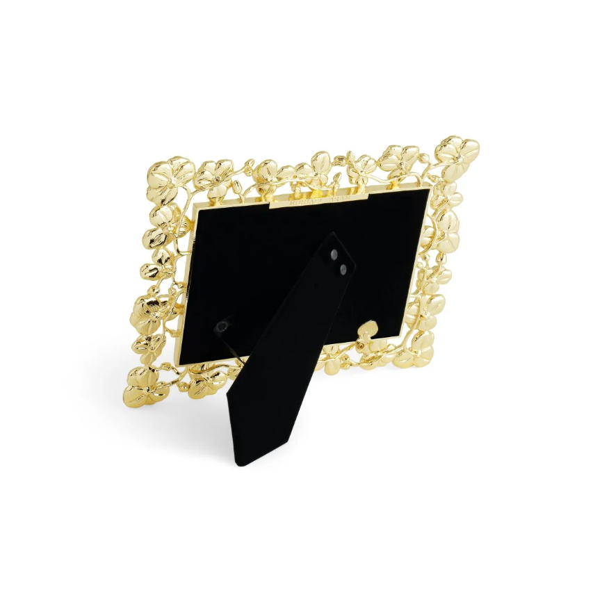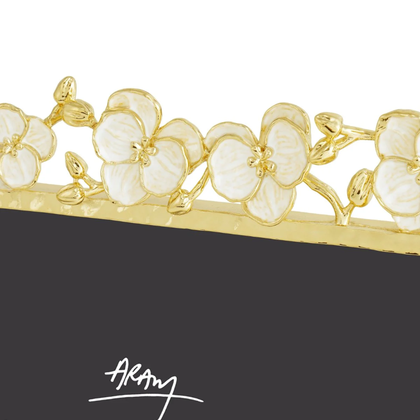 The Orchid Sculpted 5x7 Frame is a luxurious masterpiece, handcrafted in goldtone metal and adorned with delicate white enamel orchids. Its ethereal design captures the orchid’s purity and grace, while the glass front protects your treasured memories. Elegant and timeless, this frame is a refined expression of artisanal beauty and subtle luxury.