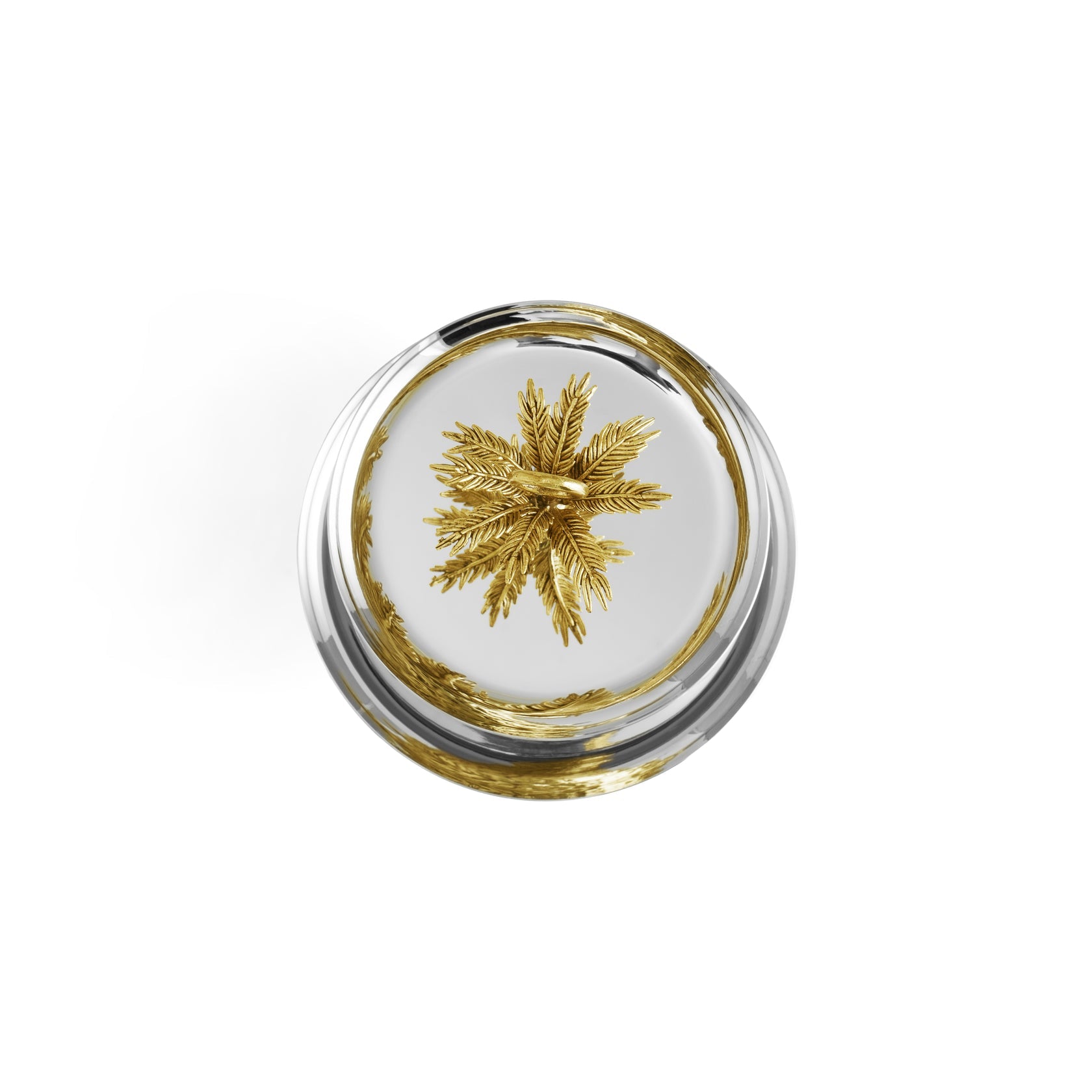 The Palm Collection is inspired by the beauty of a windswept palm tree and the perfectly imperfect shapes of woven palm leaves and fallen fronds. The warm antique gold finish and the intricate sculpted textures exude comfortable luxury and graciousness.