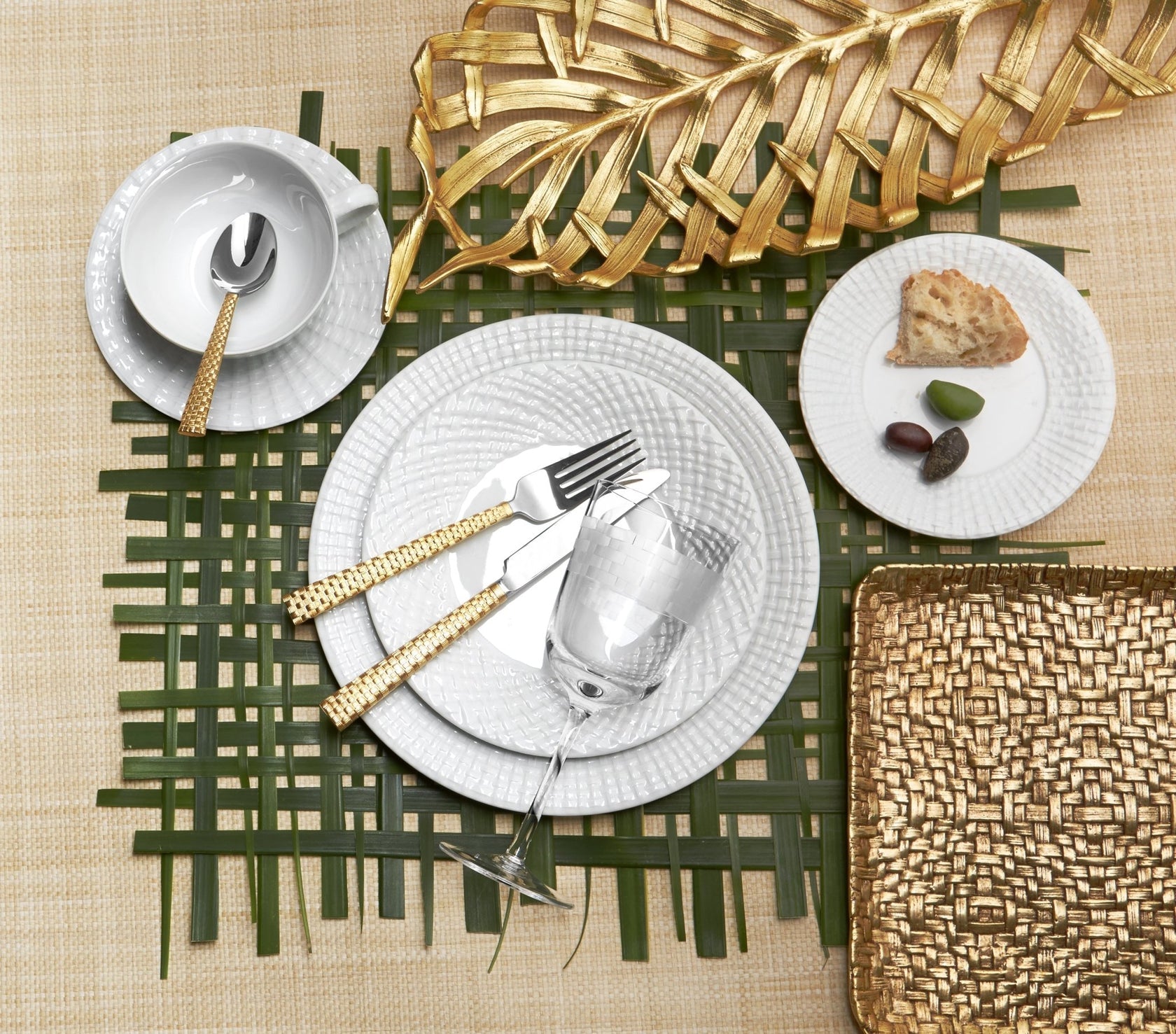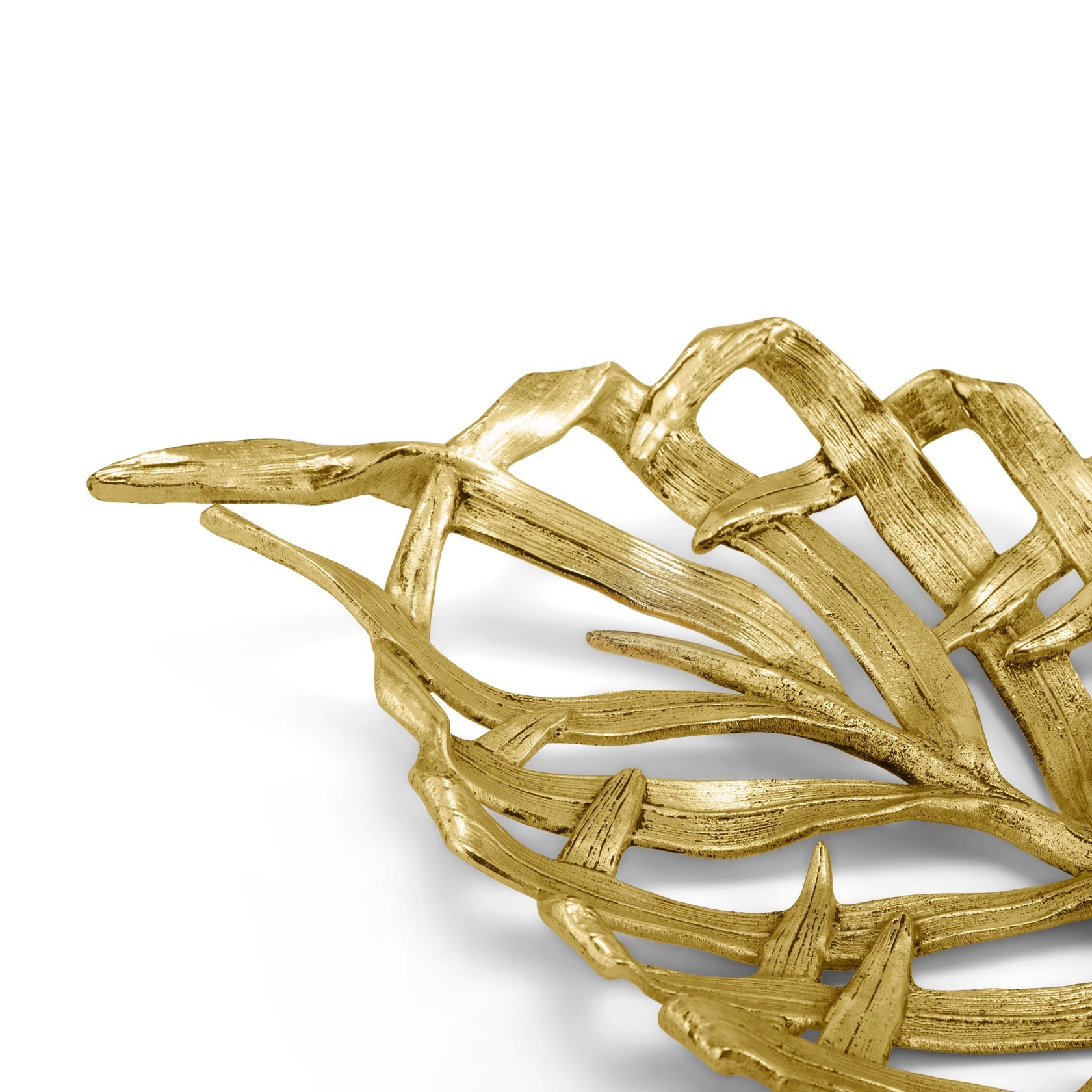 The Palm Collection is inspired by the beauty of a windswept palm tree and the perfectly imperfect shapes of woven palm leaves and fallen fronds. The warm antique gold finish and the intricate sculpted textures exude comfortable luxury and graciousness.