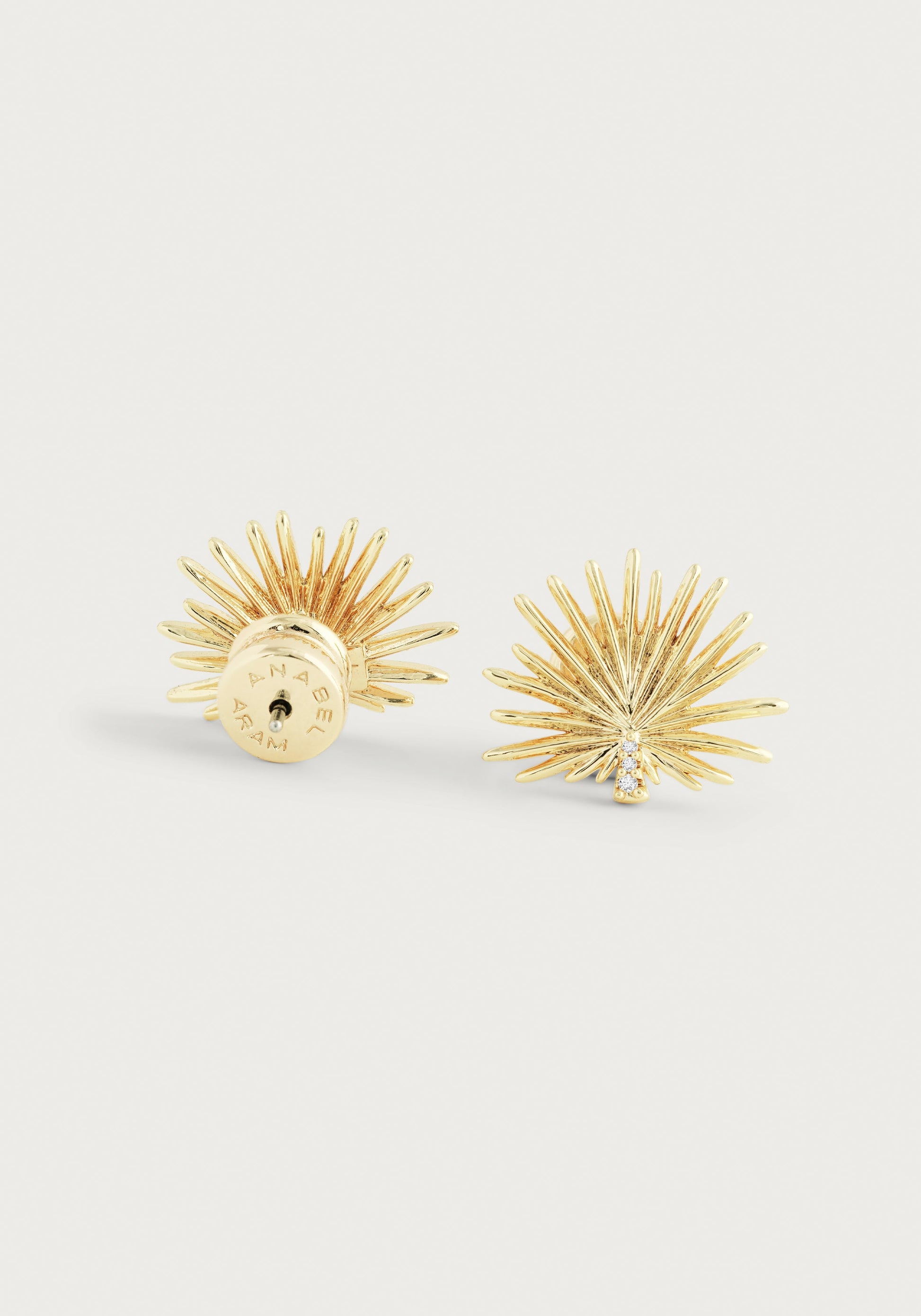These hand sculpted palm studs are crafted in 18k gold dipped brass and accented with hand-set crystals. These beautiful and exquisitely made earrings are timeless addition to your everyday wardrobe. Made with 18k gold dipped brass and adorned with hand-set crystals, these earrings are a luxurious must-have for your everyday look.