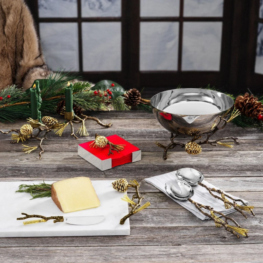 Inspired by nature and designed with Michael’s signature sculptural artistry, this piece adds a luxurious touch to your holiday gatherings, bringing warmth, texture, and timeless elegance to the table.