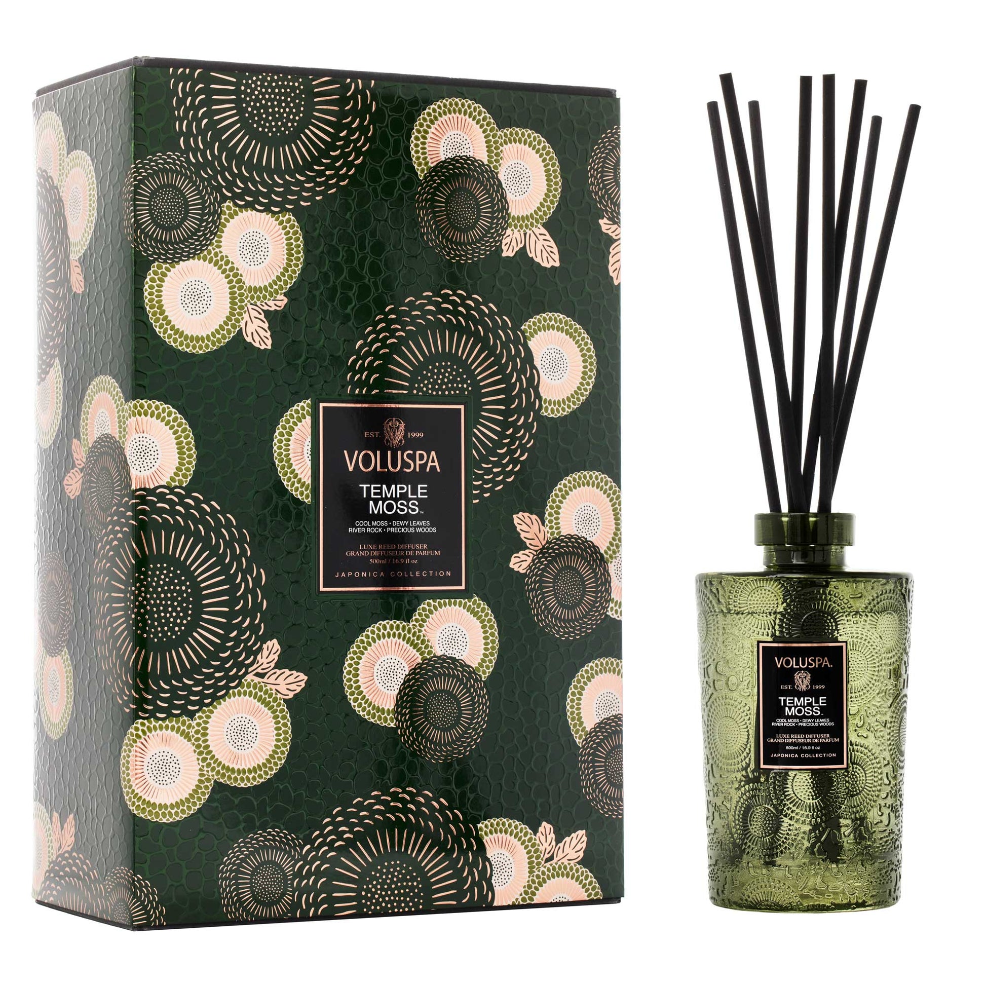 Designed using 8 wide gauge, black high absorbency reed sticks, the 500 ml larger-than-life Reed Diffuser is perfect for larger spaces. Signature Japonica fragrances captured in elegantly embossed glass, for an always-on ambiance.