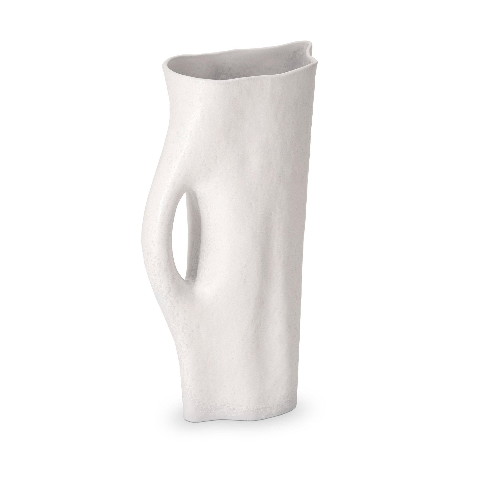 Porcelain Timna pitcher, available in the stone and iron finishes, extend the organic forms and mineral glazes of the Terra collection into sculptural drinkware. With handles carved out of the body of the form, Timna has an ancient, primal character.