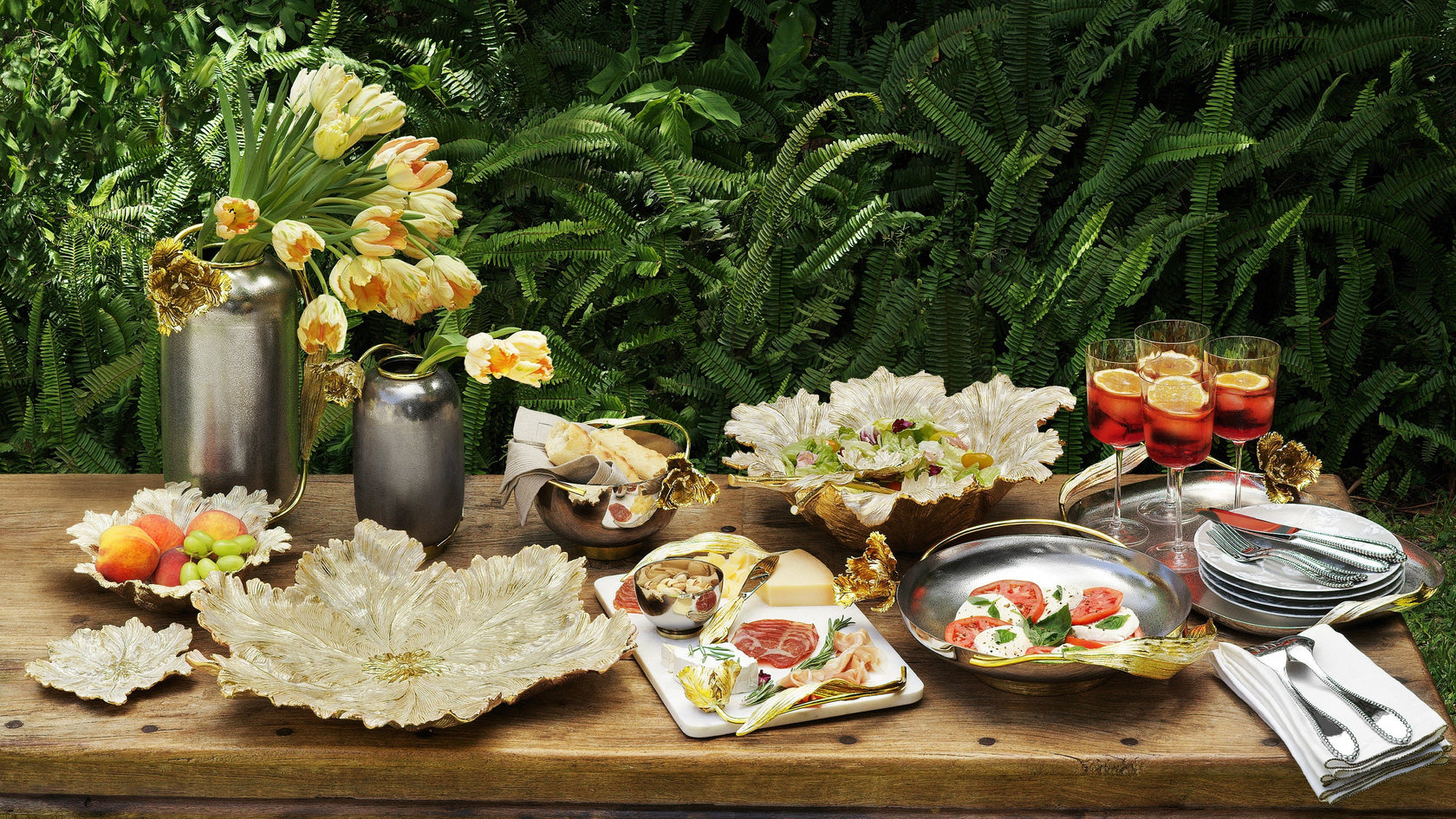 The Tulip Collection celebrates rebirth as the ground begins to thaw and new life flourishes. Inspired by the feathery petals of the Parrot Tulip, each petal ripples as if the flower is about to take flight. Symbolic of perfect love, these expressive blooms tell a story of life: of passion, grace, and new beginnings. The Tulip Collection features elaborate sculpts in a modern, lyrical way. The white enamel and gold finish reflects the effect of light and shadow that caress each flower as the world begins to wake.