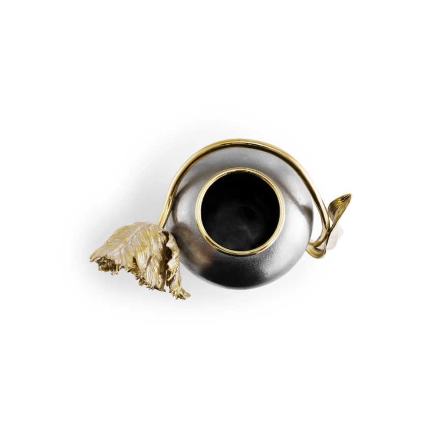 Handcrafted in white enamel with gilded gold accents, the vase captures the play of light and shadow across every petal. Modern, lyrical, and functional, it is a timeless piece of handcrafted luxury, perfect for displaying fresh blooms or as a striking decorative statement.