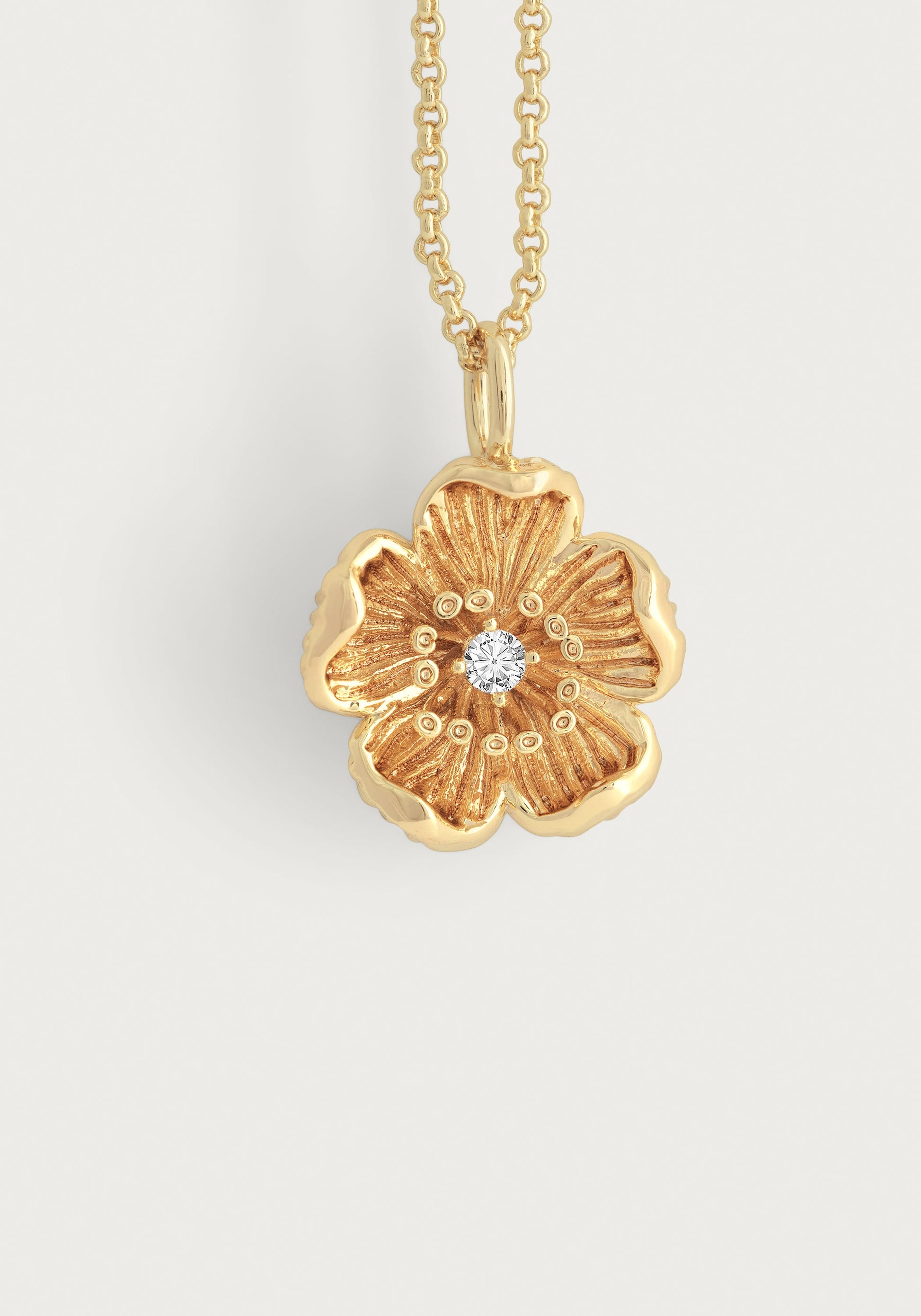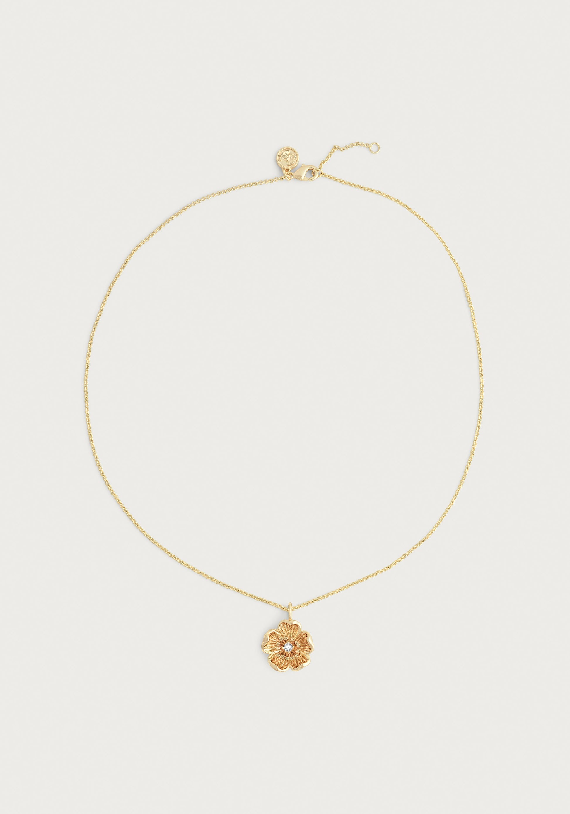 The Wildflower Pendant Necklace is hand sculpted and crafted in 18k gold dipped brass, accented with a hand-set crystal that is adjustable in length. Make a statement with an exquisite wildflower necklace. Plus, you can easily adjust the length to suit your style. Don't miss out on this luxurious and versatile accessory!