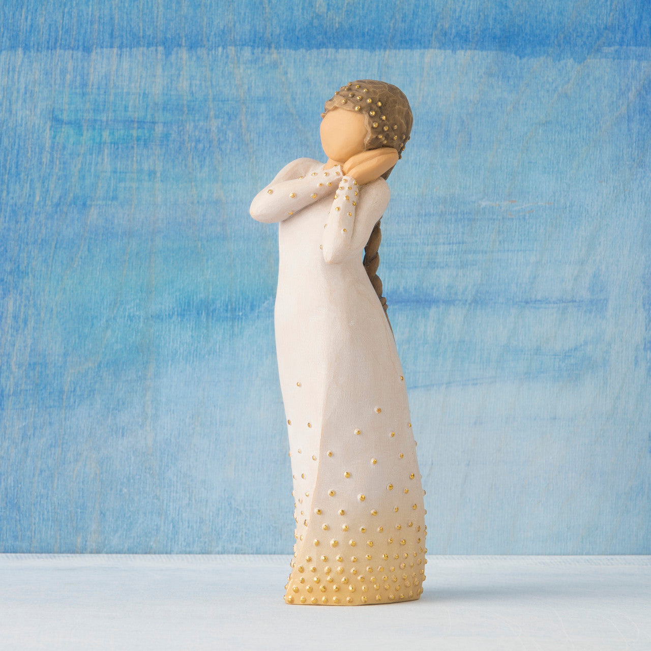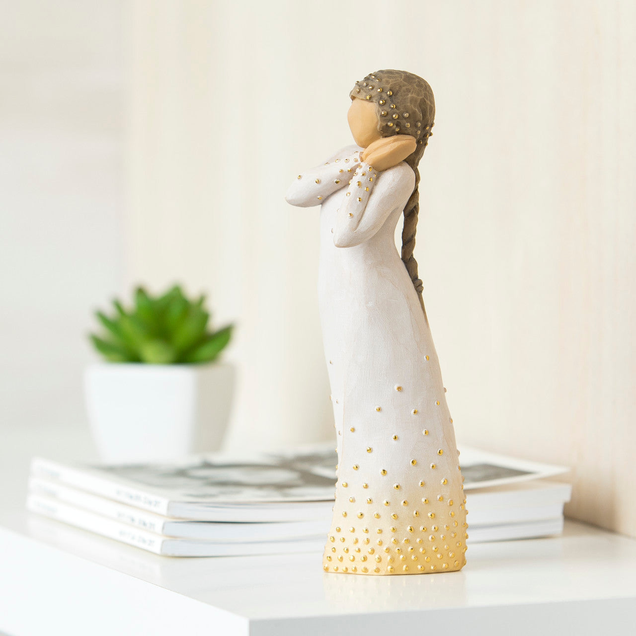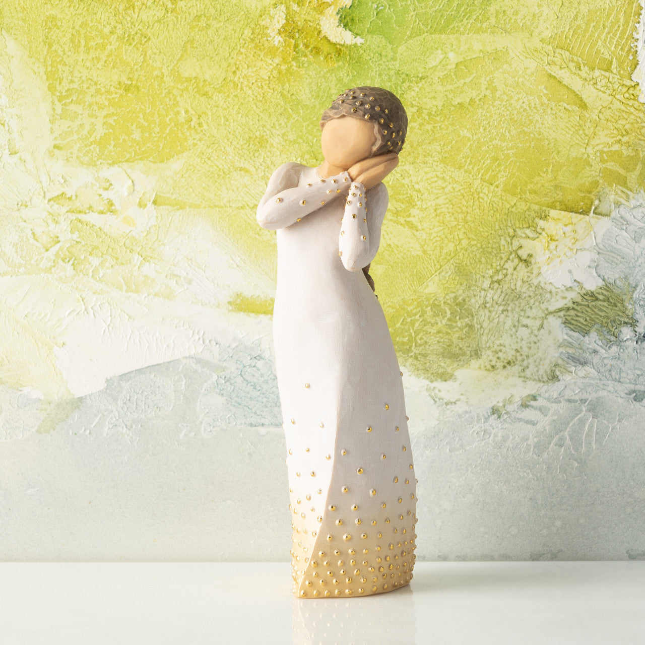 “This is a very open piece, in which the giver and receiver participate in defining its meaning. The giver can fill in the wish—perhaps a hopeful wish for a future aspiration, or a wistful 'missing you' wish, or a healing wish of comfort and friendship. At Christmas time, Wishing can be added to the Nativity display. Her golden halo and angelic gesture engage with the other figures to tell a story.” —Susan Lordi