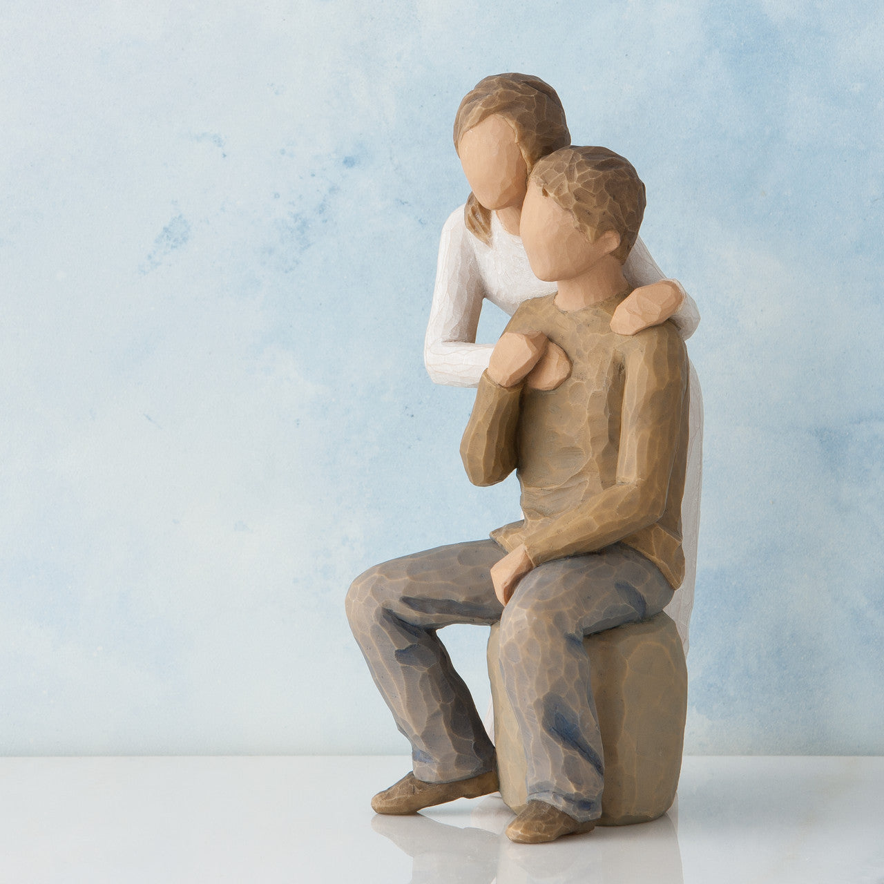 This piece is available in both DARKER and LIGHTER (shown) skin tones and hair color. A wedding, anniversary or Valentine’s Day gift that expresses love and caring. A gift that celebrates mid-life relationships and family. This figure works well in Family Groupings. It can also represent older brother and sister, or mother with grown son.